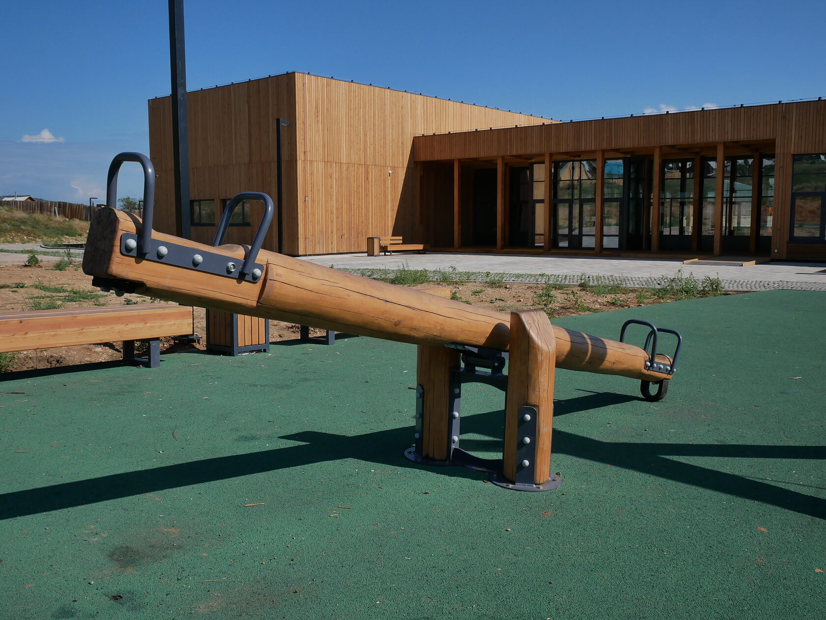 - Это модульное здание закрывает потребности жителей в круглогодичном отдыхе. Это концепция «теплых улиц». Со стороны улицы есть детская площадка, спортивная и событийная площадка. Внутри помещения также есть возможность проводить какие-то событийные мероприятия.