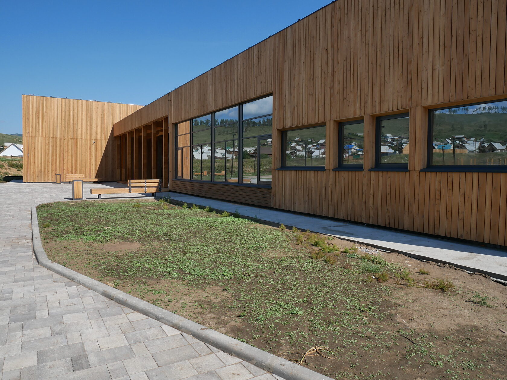 Помимо детской и спортивной площадок снаружи, внутри помещения для зрительного зала, зала хореографии, костюмерной, гримерной и кабинетов для специалистов. Не забыли и про озеленение. Высадили 120 растений, которые скоро вырастут и сделают пространство еще красивее.